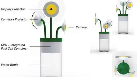 Ponad pojemnik wystają trzy całkiem wdzięczne „kwiatki”. Jeden z nich jest kamerą, drugi rzutnikiem, a trzeci posiada wbudowaną kamerę oraz rzutnik. „Kwietny” komputer stawia się na blacie stołu, na którym leży wkład dotykowy i ustawia go tak, by obraz emitowany przez rzutnik trafiał na ekran ulokowany za stołem. „Kwiatek” z kamerą i rzutnikiem odczytuje ruchy palców na podkładce i przesyła informację do procesora. Stamtąd impuls biegnie do „kwiatka” z rzutnikiem, który wyświetla obraz na ekranie.