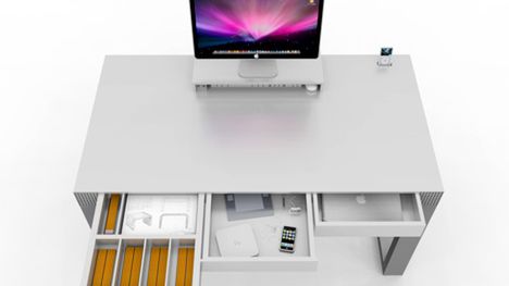 Jak widać biurko zaprojektowane zostało głównie pod produkty marki Apple, jednak myślę, że pasowałoby także do innych komputerów. Całość wygląda bardzo schludnie i elegancko. Jak na razie nie wiadomo czy biurko wejdzie do produkcji seryjnej oraz jaka miałaby być jego orientacyjna cena.