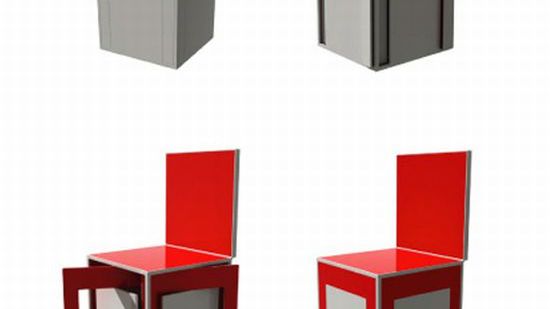 Projekt przykuwa uwagę swoją kolorystyką. Podczsa przecowywania drobnych rzeczy, szarość widnieje na ściankach. Natomiast podczas uzywania go jako krzesło zmieniamy na kolor czerwony. Drobnym minusem mogą być obracające się elementy. Bez zastosowania magnesów lub małych zaczepów mogą być uciażliwe.