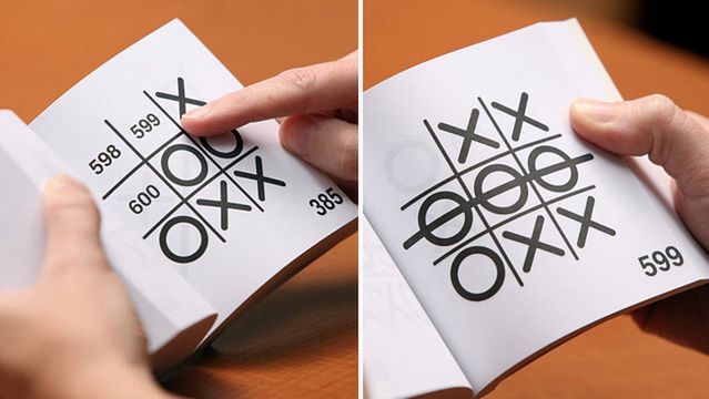 Tom, który widzicie na powyższej fotografii nie ma wbudowanego procesora, ekranu dotykowego ani nawet pojedynczego obwodu drukowanego. Zwykły zadrukowany papier, ale zdolny do rozegrania równie skutecznej partii w kółko i krzyżyk co najlepszy ludzki gracz.