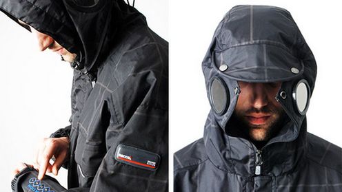 W kapturze znajdują się ponadto głośniki (2 x 2.5W), a użyty materiał pozwala skórze oddychać i jest przy tym wodoodporny. Poza tym kurtka nie działa tylko z iPodem, ale także z telefonami komórkowymi oraz innym sprzętami. Wszystko za sprawą wbudowanego portu mini jack 3.5mm.