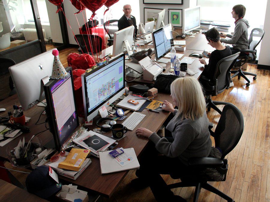 Kwatera główna serwisu zajmuje dwa piętra. Większość zespołu pracuje na górnym.