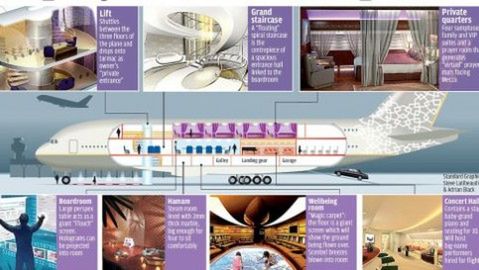Wyobraźcie sobie możliwość podróży w każde miejsce na świecie i o każdej porze. Prawda, że fajnie? Niestety prywatne samoloty przeznaczone są tylko dla najbogatszej grupy społecznej. Nie inaczej jest także w tym przypadku. Oto projekt największego prywatnego odrzutowca na świecie - przerobionego na podniebny pałac - Airbusa A380.