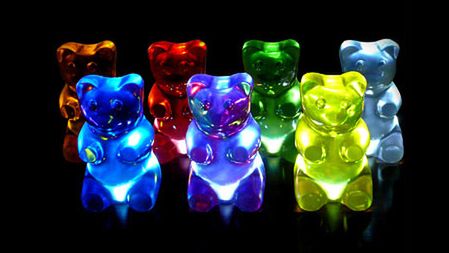 Miśki świecą delikatną, nie rażącą oczu poświatą. Poraża za to cena: 125$ za sztukę lub 500$ za rodzinkę pięciu przedstawicieli Jellio GummiLights.
