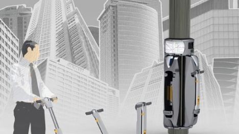 Kolejnym plusem jest zajmowanie znacznie mniej miejsca w przestrzeni publicznej. Składane hulajnogi mocowane są po prostu do podstawy latarń ulicznych, skąd dodatkowo ładowane są ich akumulatory.