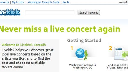 Coś ostatnio ciągle natykam się na serwisy w ten czy inny sposób kręcące się wokół muzyki. Tym razem trafiłem na Livekick, sklep z biletami na koncerty, na razie działający jedynie na terytorium Stanów.