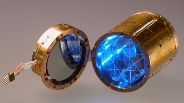 Kryształ jest umieszczony w ołowianym cylindrze. Gotowy instrument zostanie zakopany pod kilometrową warstwą skały i schłodzony do temperatury bliskiej zeru absolutnemu.