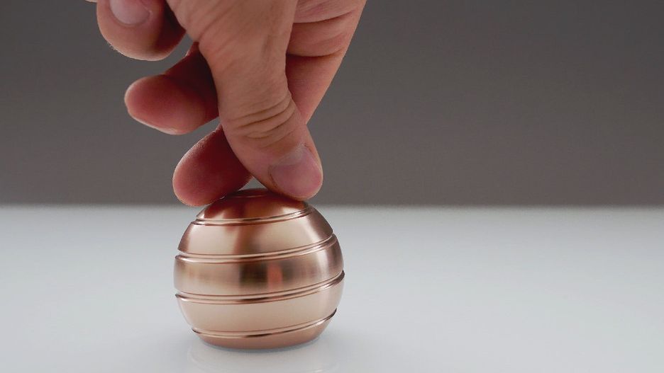 Jest nią aluminiowa kulka o nazwie Mezmoglobe. Kulka potrafi… nic. Wyróżnia ją jedynie wyfrezowany na powierzchni, spiralny wzór i ścięta podstawa, w której umieszczono łożysko. Gdy zakręcimy kulką np. na blacie biurka, ta zacznie się kręcić, a wraz z nią zawiruje również wzór, dając iluzję płynnego, harmonijnego ruchu. Zna ją każdy, komu zdarzyło się oglądać – również na ekranie – kręcące się spirale.