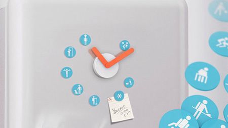 Projekt pochodzi z argentyńskiego studia DesignPlus i rzeczywiście, wydaje się być bardzo dobrym rozjemcom lodówkowych wojenek. Komplet składa się z magnetycznych wskazówek oraz kilkunastu magnesów przedstawiających różnego rodzaju czynności. Idea polega na tym, że zegarek ma pomagać nam w zorganizowaniu dnia. A gdzie będzie najlepiej widoczny taki organizator? Oczywiście na lodówce!