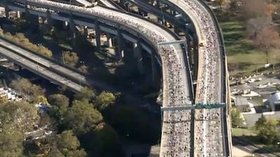 Była to czterdziesta pierwsza impreza tego typu w Wielkim Jabłku. Pogoda dopisała, więc na starcie pojawiły się tysiące biegaczy. Ludzka rzeka widziana z lotu ptaka wygląda doprawdy ciekawie. Do nagrania użyto kamer Metropolitan Transit Authority, które zwykle kontrolują ruch uliczny.