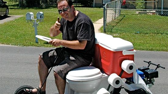 Ten gokart najwyraźniej przystosowany jest do długich podróży. Mistrzowskie połączenie toalety i małego autka pozwoli na komfortową podróż bez potrzeby szukania miejskiego szaletu (albo ustronnego krzaczka). Dave, twórca tego gokarta, wyposażył swoją konstrukcje w dwie muszle klozetowe i rolki papieru na zapas. Przenośna ubikacja potrafi rozpędzić się do 50 km/h!