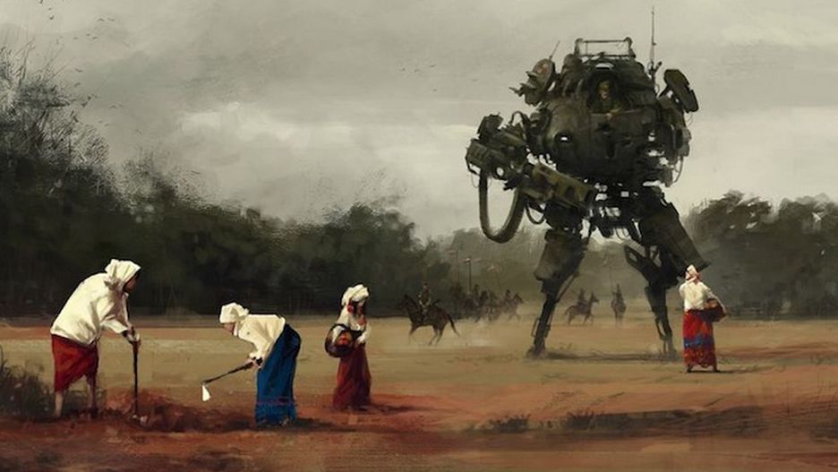 Przeniesienie wielkich, kroczących robotów bojowych w realia polskiej wsi z początku XX wieku to wyzwanie, którego podjął się mieszkający w Niemczech grafik, Jakub Różalski. Efektem jego pracy jest cykl, zatytułowany „1920+”, przedstawiający alternatywną wizję wydarzeń z poprzedniego wieku. Wielkie, najeżone bronią roboty wyglądają niesamowicie!