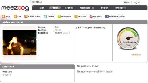 Tak na poważnie, to Meezoog jest kolejnym serwisem społecznościowym, tym razem jego atutem ma być to, co dobrze znamy z polskiego Grona - zabawa w szósty stopień oddalenia wymagająca wcześniejszego zaproszenia. Żeby mieć na swojej liście kontaktów tylko prawdziwych przyjaciół. Choć chyba system nie działa do końca, bo mogłem się bez problemu zapisać i dysponuje teraz 18 zaproszeniami.