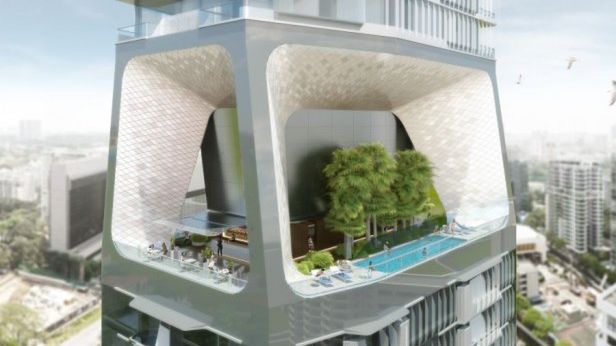 Projekt apartamentowca The Scotts Tower jest dobrym przykładem nie tylko nowoczesnych rozwiązań architektoniczno-inżynierskich, ale także urbanistycznych. Jedną z nich jest przeniesienie i ekspozycja przestrzeni miejskiej w płaszczyzny pionowe. Nie jest to pomysł młody, taka wizja liczy sobie ponad pół wieku. Obecnie jednak jest coraz częściej realizowana.