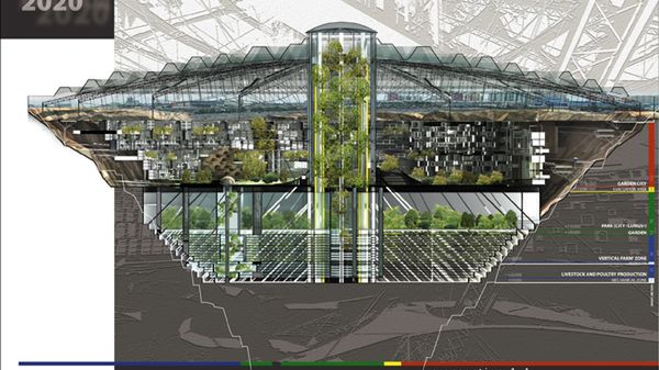 Jednym z bardziej interesujących elementów konstrukcji jest szklany dach, który z jednej strony ma chronić całe miasto, z drugiej - pokryty ogniwami fotowoltaicznymi - ma dostarczać energię potrzebną do funkcjonowania całego przedsięwzięcia.