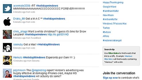 Tym razem stało się tak samo - fani Maków, którzy przejęli tag w Twitterze zachowali się bardzo nieelegancko. Zawsze wydawało mi się, że użytkownicy komputerów Apple to ludzie wykształceni i obyci ;). Niezależnie od tego przypadkiem ujawniono niewygodne dla Microsoftu szczegóły kampanii.