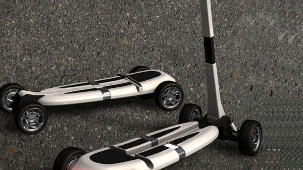 Nazwa doskonale oddaje główną cechę tego pojazdu. Chameleon przypomina coś pomiędzy skuterem a hulajnogą. Po złożeniu rączki i ukryciu jej w podstawie zamienia się w deskorolkę z napędem elektrycznym.