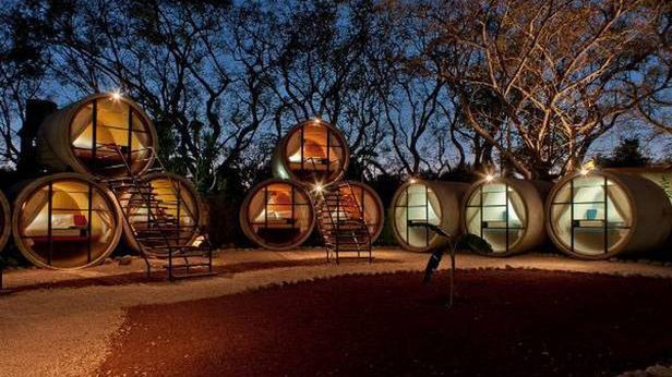 Hotel jest świetnym przykładem, w jaki sposób niewielkim kosztem i wykorzystując odzyskane z niepotrzebnych budowli fragmenty betowych rur, można stworzyć atrakcyjną noclegownię bez nadmiernej ingerencji w krajobraz.