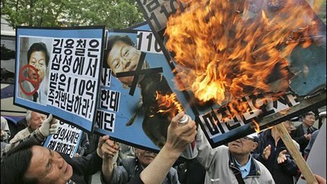 Na nic zdały się zabiegi wydawcy* Korea Times*, aby załagodzić konflikt. Nie pomogło sprostowanie, ani też drugie - które podobno opracowali spece od PR Samsunga. Sam Breen ma również niewesoło, bowiem w Korei Południowej za pomówienia można wylądować za kratkami na długie lata. A jeśli nie słyszeliście o pogłoskach dotyczących "ciemnej strony Samsunga", to kilka słów wyjaśnienia. Były doradca prawny firmy, Kim Yong-chul, wydał książkę Think Samsung, w której opisał finansowe przekręty firmy, jakie poznał podczas pracy - łapownictwo oraz oszukiwanie na podatkach. Jako że Samsung jest w Korei Południowej otaczany szacunkiem równym niemal kultowi, premierze książki towarzyszyły demonstracje zmierzające do zablokowania jej sprzedaży.