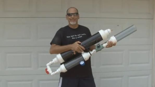 Jednak instynkt domorosłego majsterkowicza podpowiada, że każdy z Was może znaleźć inne zastosowanie dla tego ustrojstwa. Aby je zbudować, wystarczy kilka starych lub nowych rur PCV, kilka kolanek, pompka rowerowa i - oczywiście - zapał do pracy.