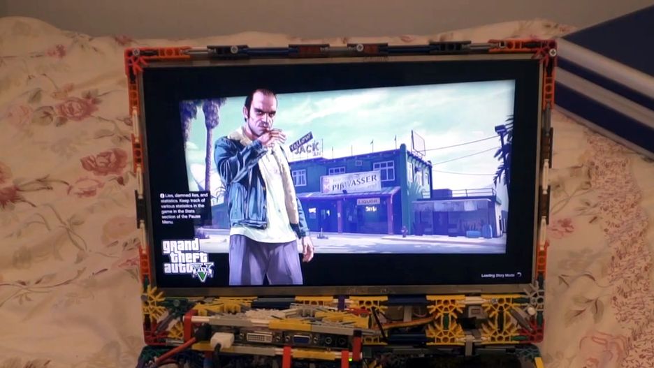 Całość umieszczona jest w obudowie zrobionej ze sklejki i ramy z czegoś podobnego do klocków Lego. Urządzenie jest niby przenośne, ale nijak się ma nawet do grubszych obudów współczesnych laptopów. A nawet obszerne wieloletnie konstrukcje wydają się przy nim smukłe. Aby wszystko się nie rozsypało, Axel przenosi swój komputer w walizce, ale na mniejsze odległości po prostu bierze go „pod pachę”.
