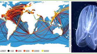 Napisałam* ilość*, a nie liczba, ponieważ mapa dotyczy wędrówek morskich organizmów przewożonych w zbiornikach statków z wodą balastową.