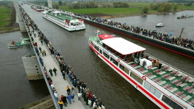 Oryginalna nazwa niemieckiego akweduktu to "Magdeburg Water Bridge". Most został oddany do użytku w październiku 2003 roku i ma aż 918 metrów długości. Zbudowano go z myślą o połączeniu dwóch kanałów; Elbe-Havel oraz Mittellandkanal.