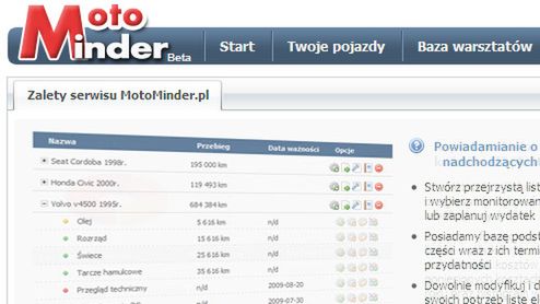 W sieci pojawił się praktyczny serwis dla wszystkich właścicieli pojazdów mechanicznych (auta, motocykle). MotoMinder.pl ma za zadanie dostarczać swoim użytkownikom informacji o kosztach eksploatacji posiadanych maszyn (zużycie paliwa, części), a także zapewnić pomoc w ich regularnym serwisowaniu.