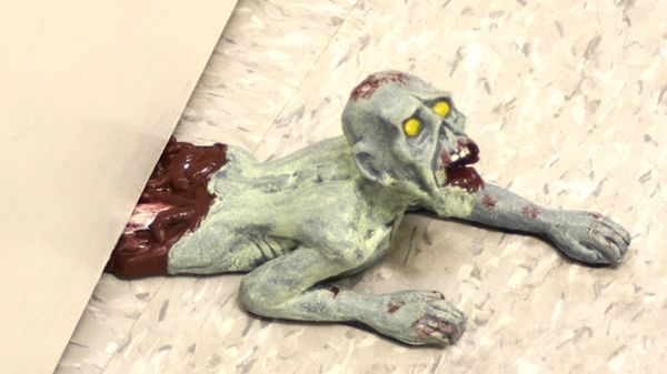 Zombie nie tylko sprawnie - choć stosunkowo wolno - chodzą, ale i pełzają. Motyw pełzającego zombie został wykorzystany przy produkcji jakże uroczej podpórki pod drzwi. Pamiętajcie tylko, by w przypadku inwazji usunąć ją i porządnie się zabarykadować. Jak już pewnie zauważyliście, nie jest to cały zombie, tylko jego połowa - nie wiadomo, czy ta lepsza… Jak by nie było, możemy zakupić ją tutaj.