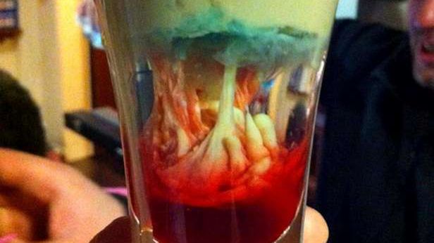 Poszczególne składniki nie połączą się, a opadająca na dno grenadyna pociągnie za sobą część irlandzkiego likieru. Efekt, jak widać na zdjęciach, jest rewelacyjny. Proces tworzenia i opadające mózgi obcych możecie zobaczyć na poniższym filmie. Uwaga, wulgaryzmy!