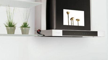 Okap posiada nie tylko wbudowany 19-calowy telewizor LCD, o rozdzielczości 1440 x 900 (jasność 300 cd/m2, kontrast 850:1), z cyfrowym i analogowym tunerem i pilotem, ale wręcz kuchenny komputer pokładowy (linux embeded), z odtwarzaczem multimedialnym, łączem ADSL do internetu, 4 GB flashdyskiem, pełnym kulinarnych przepisów, kamerą internetową, bezprzewodową myszką i klawiaturą oraz jednym wolnym portem USB.