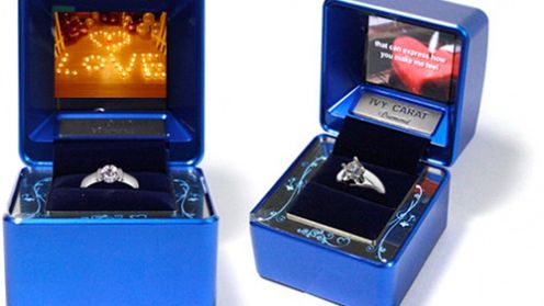 Komedie romantyczne uczą nas co dzień, że propozycja zamążpójścia powinna być wydarzeniem nietypowym i pamiętnym. Pojawiają się więc banery na stadionach, strony wykupione w prasie codziennej, bilboardy i wiele innych szalonych koncepcji. Firma KJ Global Ltd stwierdziła, że jedyne, czego jeszcze brakuje, to muzyczne etui na pierścionek z kolorowym wyświetlaczem.
