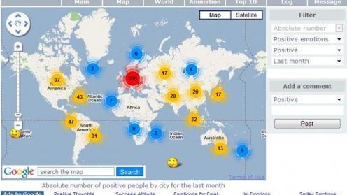 Cała idea jest w zasadzie banalnie prosta. Wystarczy wejść na stronę aplikacji i wybrać nastrój, w którym jesteśmy obecnie. Możemy pokazać, że jesteśmy szczęśliwi, zakochani, smutni lub po prostu OK. Kiedy już wybierzemy stan najlepiej nas w danej chwili opisujący, aplikacja automatycznie wykryje nasze obecne położenie używając adresu IP. Automatycznie zostaniemy umieszczeni na mapie. Nastroje mogą być zwizualizowane na różnych rodzajach map.