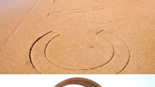 To urządzenie trudno tak naprawdę nazwać drukarką. Zresztą trudno to nazwać też urządzeniem. No, powiedzmy, że to gigantyczne koło jest przyrządem do drukowania napisów na piasku. Co by nie rzec, w samym zamyśle jest błyskotliwe i całkiem skuteczne.