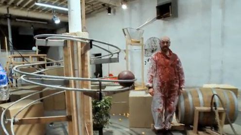 Pamiętacie grę Incredible Machines? Polegała na tworzeniu wymyślnych maszyn przy zastosowaniu prostych mechanizmów. Godzinami składało się baloniki, przekaźniki, gumki, silniczki, kulki, nożyczki i co tam jeszcze twórcy wymyślili. Efekt był niezwykły, gdy spadająca piłeczka potrafiła uruchomić cały ciąg zdarzeń, który prowadził do określonego celu. Obejrzyjcie coś takiego w rzeczywistości. Robi piorunujące wrażenie!