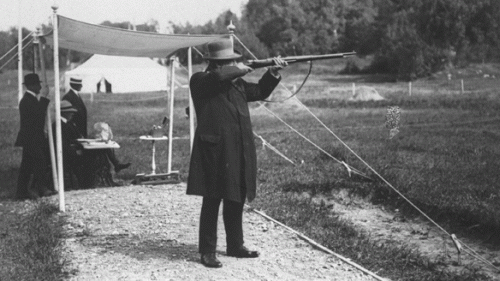 Tylko dwukrotnie w historii rozegrano olimpijskie zawody w pojedynkowaniu się. W obu przypadkach zawodnicy nosili maski i mieli za zadanie strzelić przeciwnikowi w twarz kulą wykonaną z wosku. Najbardziej znanym zwycięzcą w tej kategorii był Sir Cosmo Duff Gordon, który zasłynął również jako jedna z nielicznych osób uratowanych z pokładu Titanica.