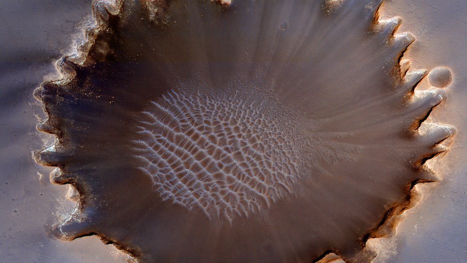 Fotografia wykonana przez sondę MRO - przedstawia wydmy znajdujące się we wnętrzu marsjańskiego krateru Herschela.
