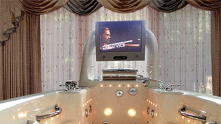 Ale dajmy spokój takim małostkom. Wanna posiada ekstra dodatki, które decydują o jej wyjątkowości. Model ten wyposażony jest w telewizor LCD wraz z pilotem. Głupio wyglądałoby przecież podnoszenie się z wygodnej pozycji tylko po to, żeby zmienić program. Ekran nie jest wodoodporny, ale posiada prosty system zabezpieczający całą elektronikę przed zamoczeniem.