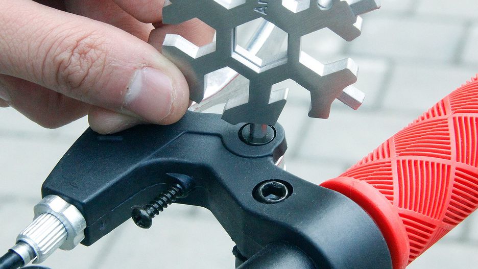 Podobny pomysł wykorzystali projektanci zestawu narzędzi o nazwie All-in Multitool. W tym przypadku narzędzia chowają się wewnątrz osi suportu. Po wyciągnięciu mamy do dyspozycji zestaw kluczy i gniazdo na bity.