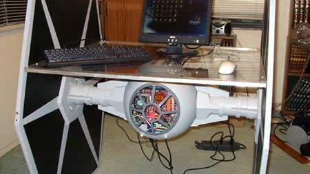 Miłość i kreatywność fana nie zna granic. Ta niezwykła obudowa służy nie tylko jako osłona na sprzętowe wnętrzności komputera, lecz także jako wygodny stolik. Biurko w kształcie myśliwca TIE to chyba marzenia każdego fana Gwiezdnych wojen. Twórcą tej obudowy jest David Barry, który dzięki swojej konstrukcji zdobył pierwsze miejsce w konkursie na modyfikacje obudowy komputerowej w stylu science fiction.