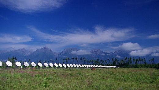 "Wszechświatowe rekordy wielkości w astronomii należą do obiektów, których nie dostrzeżemy na niebie gołym okiem, co więcej - nawet przez największą lunetę. Te kosmiczne monstra, zamiast światła widzialnego, wysyłają fale radiowe, które wykrywane są przez radioteleskopy" - mówi dr Marek Jamrozy z Obserwatorium Astronomicznego UJ. "Takie radioteleskopy przypominają ogromne anteny satelitarne, których średnice sięgają nawet kilkuset metrów" - dodaje.