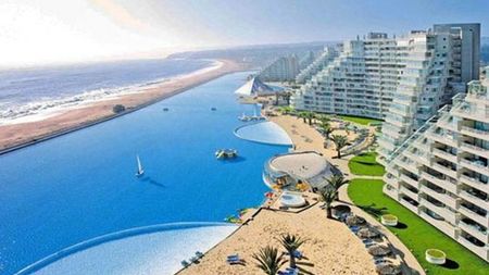 Basen w miejscowości Algarrobo w Chile jest największym na świecie basenem stworzonym w celach wypoczynkowych dla hotelowych gości nadmorskiego kurortu. Trudno jest mi zrozumieć fenomen takich obiektów. Zauważcie, że tuż obok znajdują się niezliczone hektolitry wody, która nie jest ograniczona żadną przestrzenią.