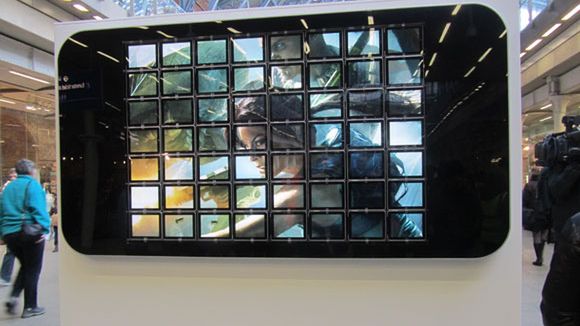 Niezwykła konstrukcja została ustawiona we wnętrzu słynnej londyńskiej stacji kolejowej St Pancras International. Niestety, iPhone złożony z 56 tabletów nie jest pomysłem zapalonych fanów koncernu Jobsa, a jedynie sposobem na promocję gry Lara Croft Guardian of Light, która właśnie trafiła na platformę Apple App Store. Szkoda tylko, że z gigantycznej konstrukcji nie dało się wykonywać połączeń...