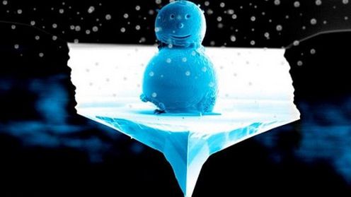 Wykąpał bałwanka w niebieskim świetle, aby nadać mu odpowiedni kolor. Uśmiechnięta buźka powstała, dzięki skupionemu laserowi jonowemu.