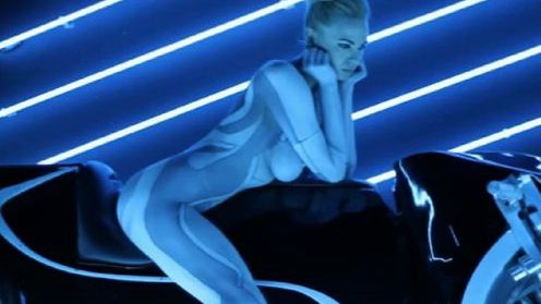 Dwie modelki - Irina Voronina i Sasckya Porto - pozują bez ubrań, a liczne futurystyczne światła padają na ich ciała w rozmaitych miejscach. Całość utrzymana jest w charakterystycznym, tronowym błękicie. Nie zabrakło także świetlnych motocykli - opisywanych na Gadżetomanii Parker Brothers Choppers, na których wdzięczą się wspomniane panie.