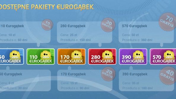 Dotychczas za wirtualne prezenty i oferowane przez serwis usługi, takie jak wyświetlanie osób odwiedzających nasz profil, płaciło się przez SMS lub przelewem. Od dziś użytkownicy mogą użyć również wewnętrznej waluty nazwanej Eurogabką (EGB). Za realne złotówki możemy kupić pakiet 50, 110, 170, 280, 390 lub 570 EGB.