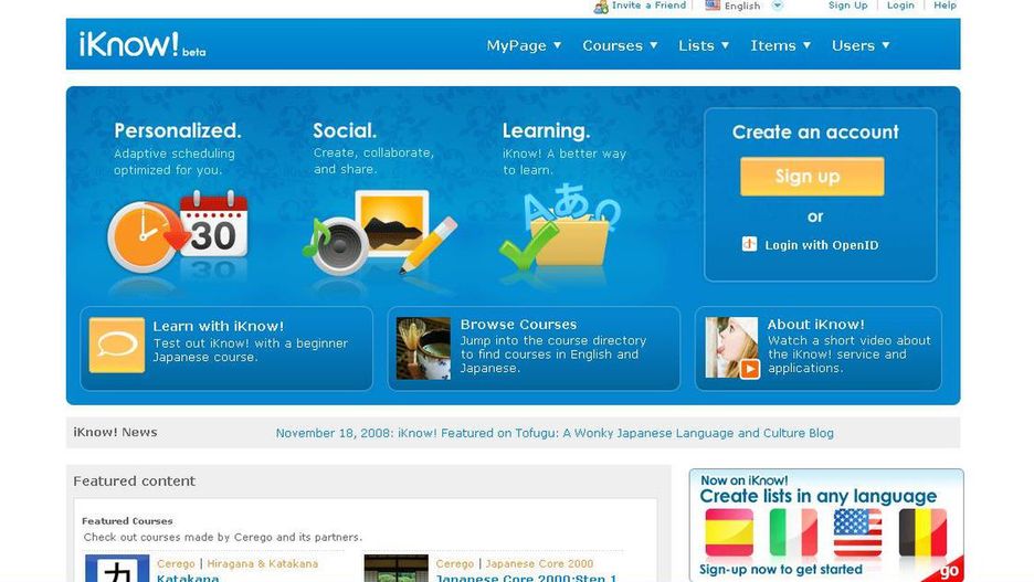 Na stronie zarejestrowanych jest 340,000 użytkowników. Użytkownicy mogą łatwo stworzyć własne proste zdania, które są automatycznie tłumaczone na inny język. Mogą również planować testy, czy dodawać obrazki, aby wspomóc szybsze zapamiętywanie. Inni natomiast mogą poprawiać, czy dyskutować na temat dodanych materiałów oraz dodawać je do swojej listy. Jeśli więc chcecie wspomóc naukę swojego języka obcego, wypróbujcie także iKnow!.