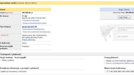 Aukcja Allegro dotycząca nerki została szybko usunięta. Jak poprzednie. Cena nie była wygórowana - jedynie 100.000 PLN w opcji "Kup teraz". Gdzie pojawi się zaraz ogłoszenie o sprzedaży tej samej nerki? Bo gdzieś na pewno. Też w Internecie.