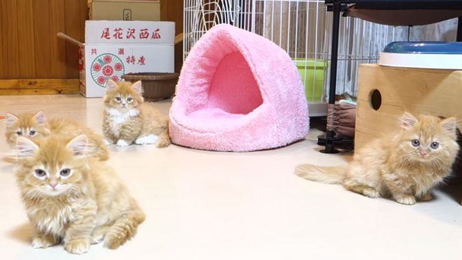 Na początku koty są przestraszone, ale potem... Zobaczcie sami - to najładniejszy film, który dzisiaj zobaczycie.