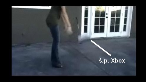 Ale zwróćcie uwagę na moment, w którym ta przemiła Pani trzepie Xboxa kijem do golfa. Słyszycie to ujadanie psów w tle? Nawet dzika zwierzyna wie, że dzieje się coś strasznego. Pewnie gdyby na miejscu Xboxa było Wii, na podwórko zbiegły by się sarenki i zleciały białe gołąbki gruchając o ocalenie konsoli.